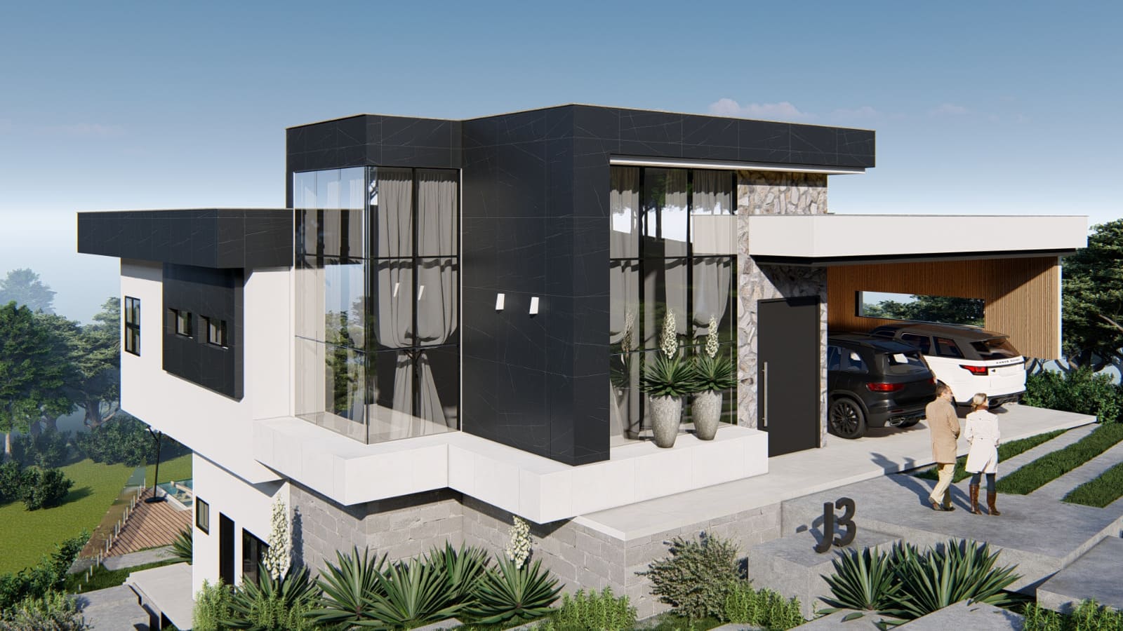 Garagem coberta com vaga para dois carros